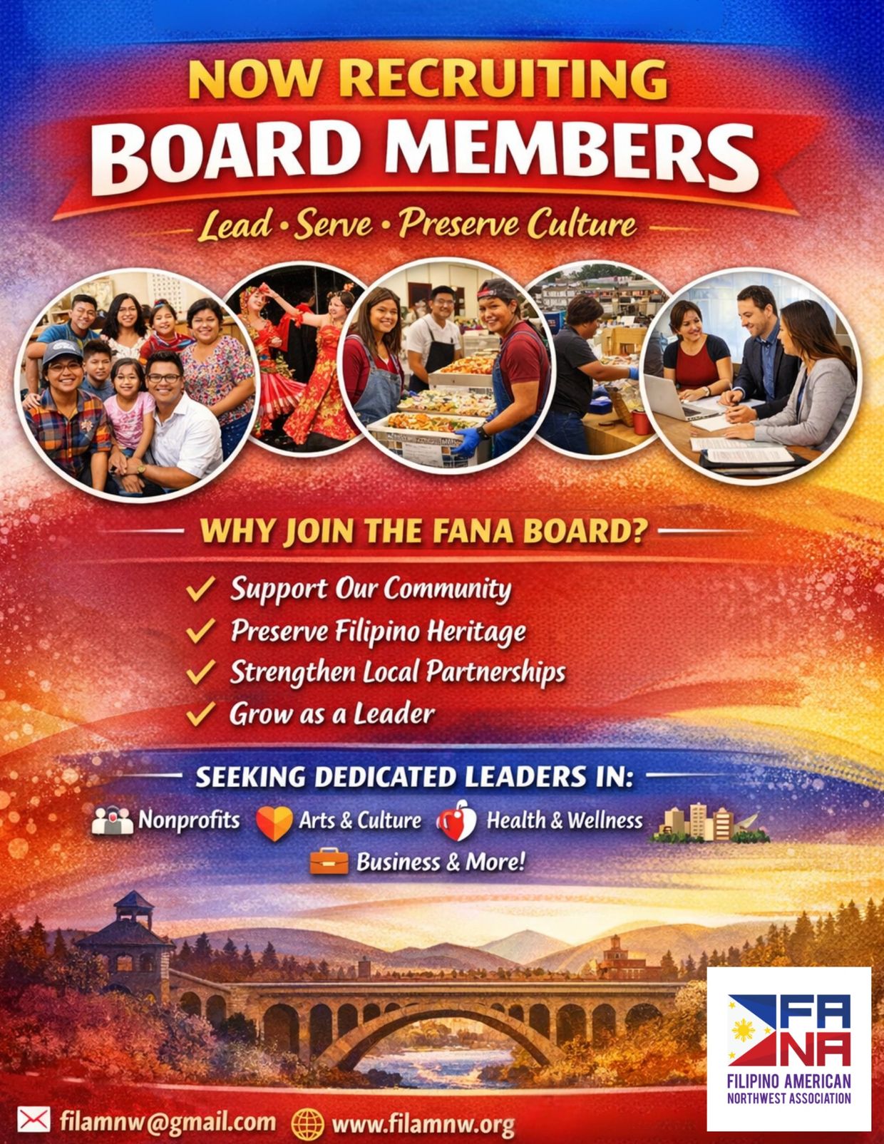 The Filipino American Northwest Association (FANA) is a 501(c)(3) nonprofit dedicated to building a compassionate, resilient, and inclusive community by advancing:
